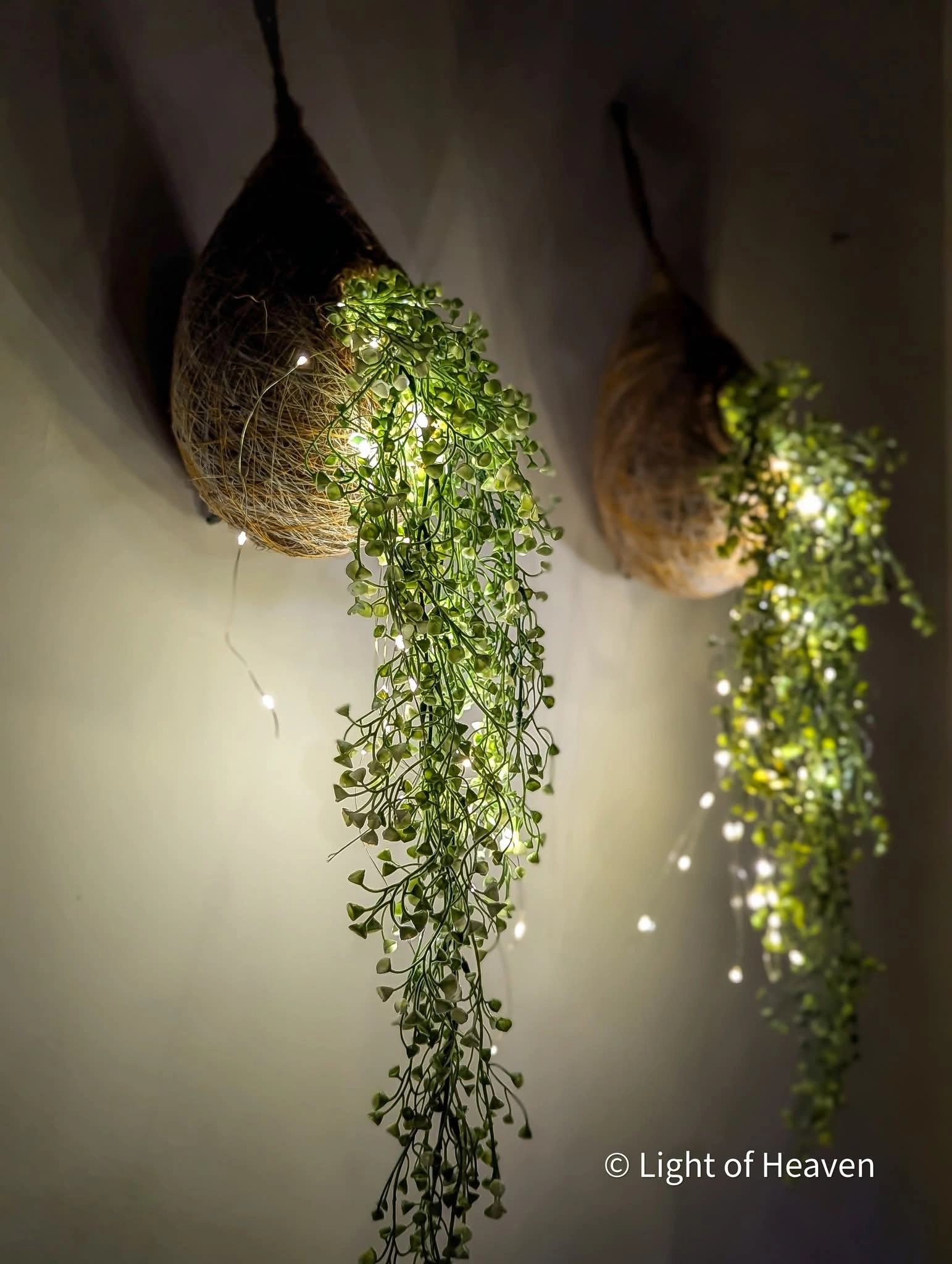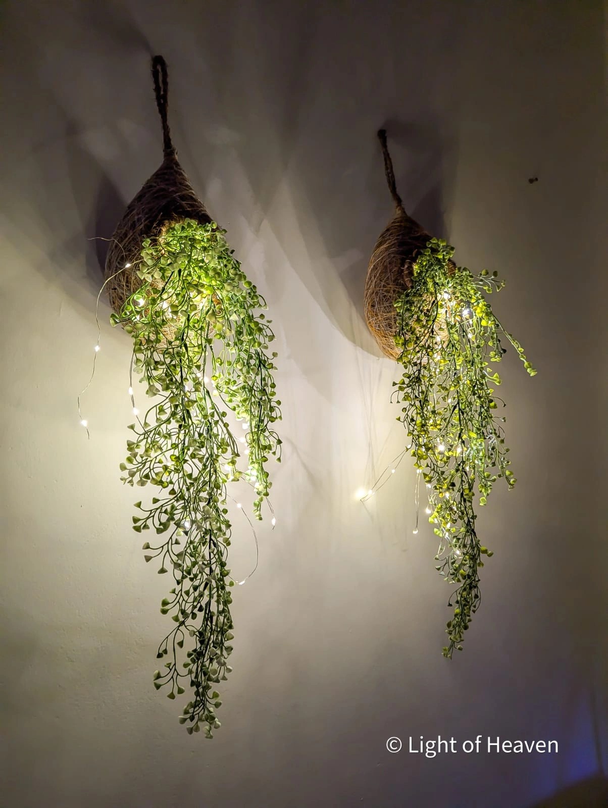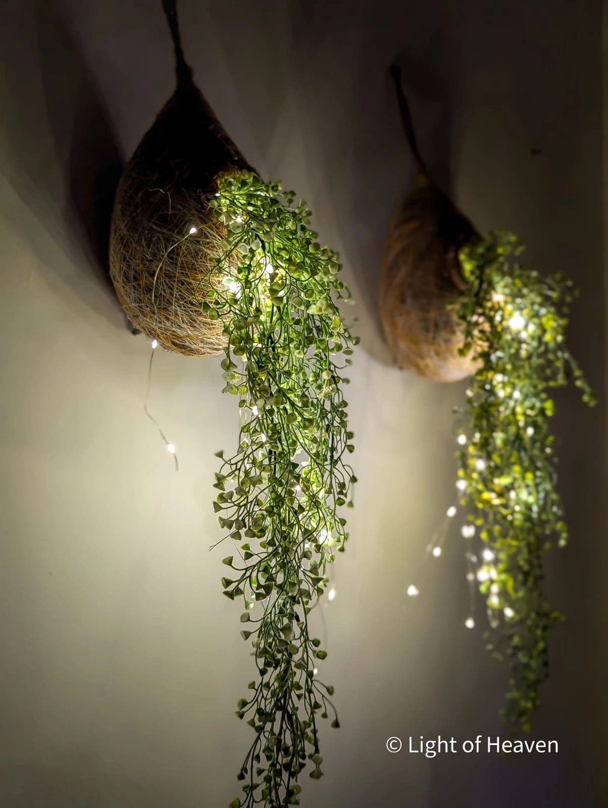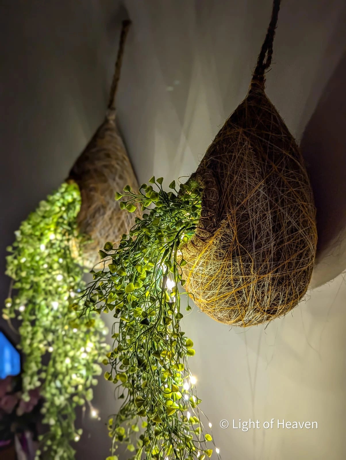 পাখির বাসার সাথে ফুল এবং লাইটের দারুন কম্বিনেশন। প্রতিটি পাখির