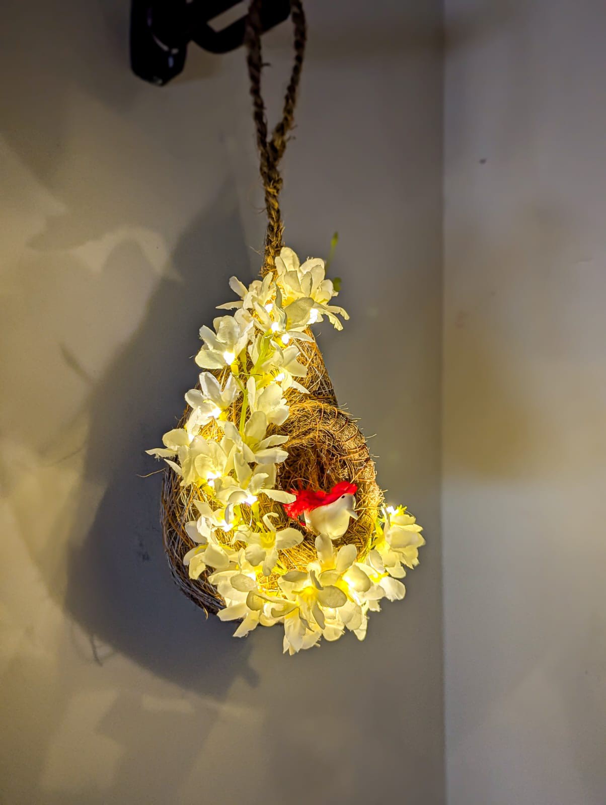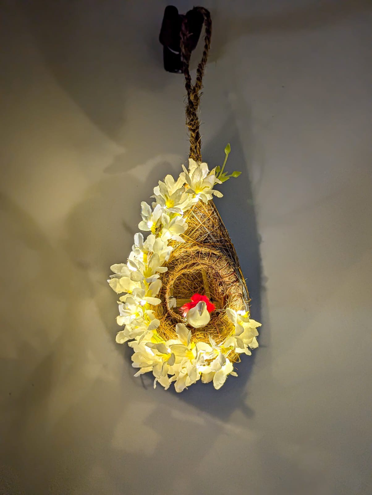 পাখির বাসার সাথে ফুল এবং লাইটের দারুন কম্বিনেশন। প্রতিটি পাখির