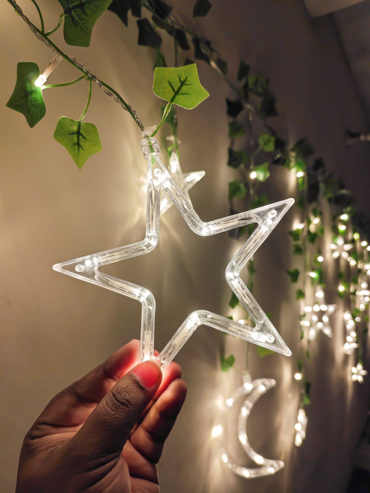 🔸 ডিজাইন – চাঁদ ও তারা আকৃতির LED লাইট, সাথে পাতার ডেকরেশন মিক্স করলে একেবারে ন্যাচারাল লুক তৈরি হয়।